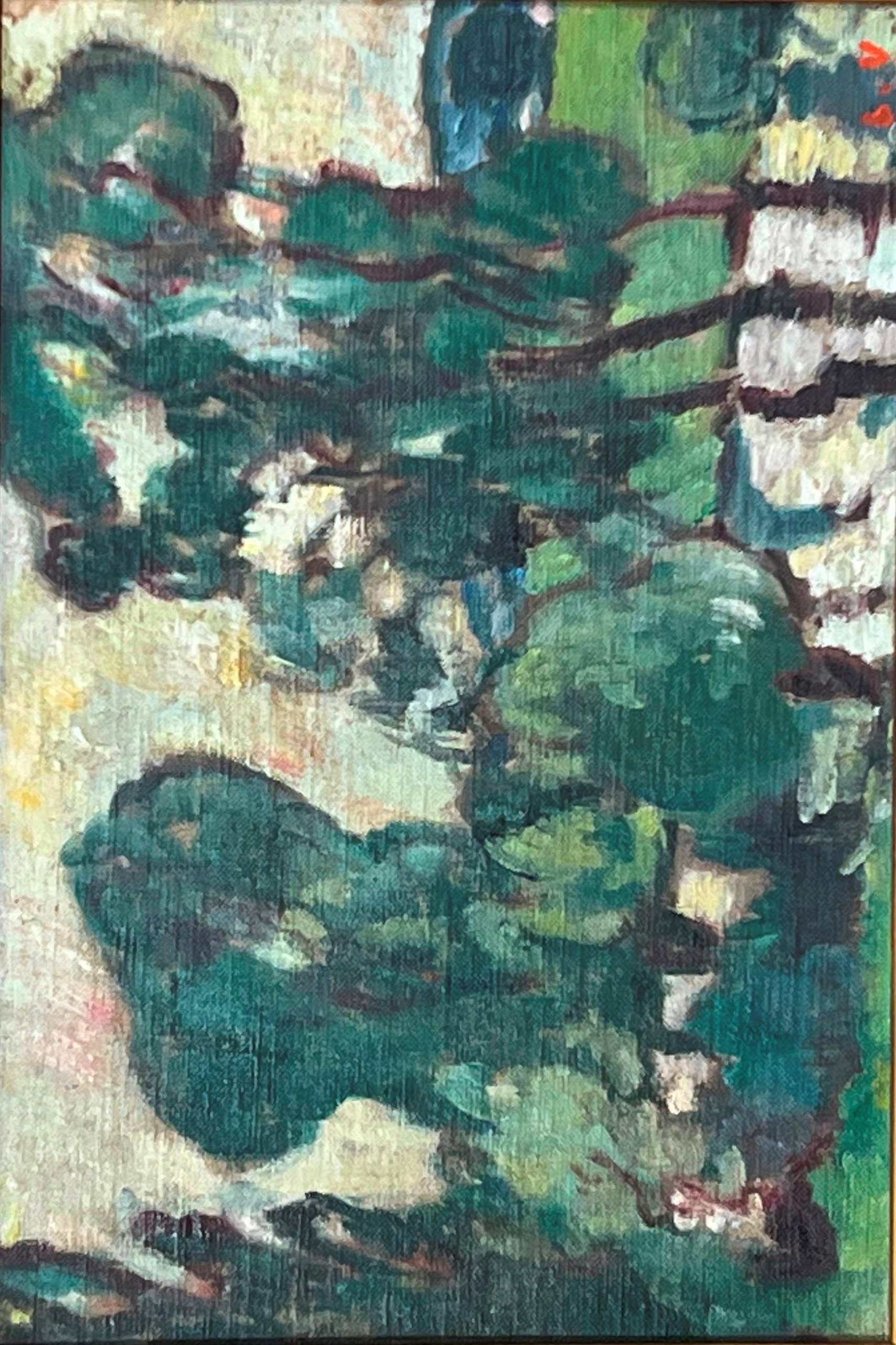 46 - Louis VALTAT (1869-1952) "Les arbres au bord de la rivière" 1910 Huile sur toile, marouflée sur panneau, porte le cachet des des initiales en bas à droite. 22 x 32 cm
