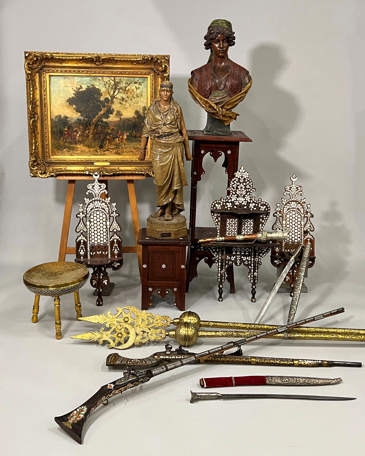 Ensemble de Tableaux, Objets et Meubles Orientatistes. POUR VOIR TOUS LES LOTS CONSULTEZ LE SITE INTERENCHERES.COM