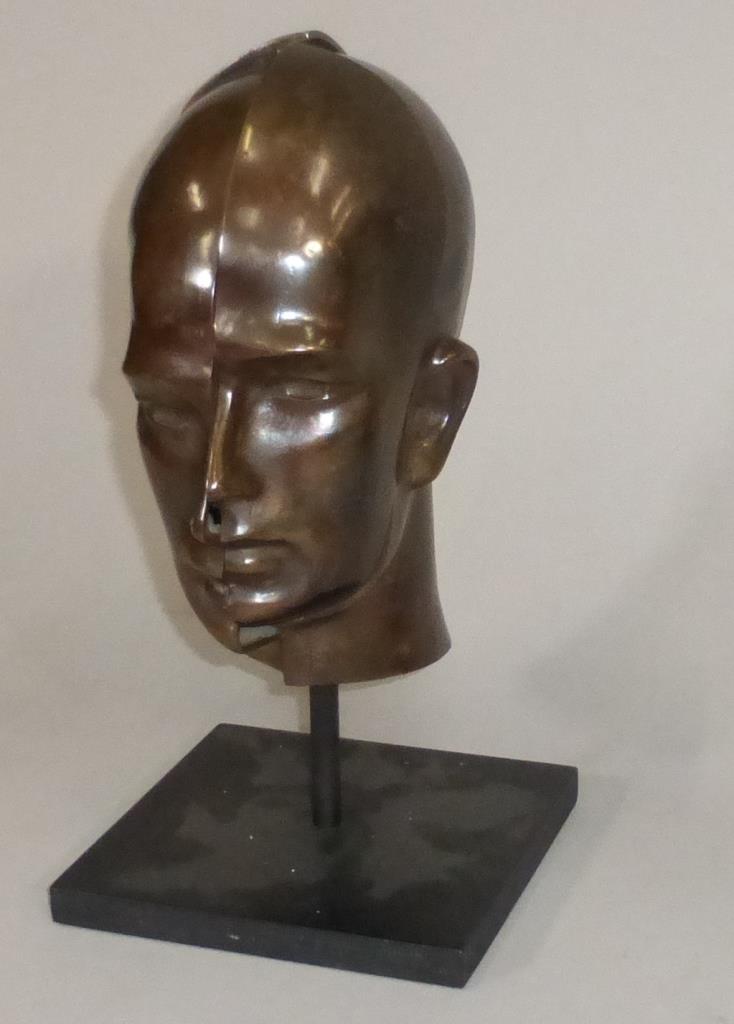 BERTHET - "Tête d'homme" Sculpture en bronze patiné, signée et datée 81 et n° 1/1 H. 43 cm