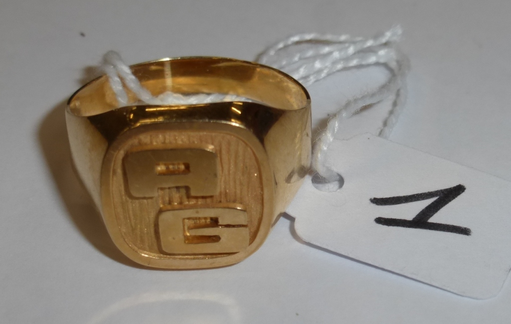 Chevalière en or jaune 18k monogrammée A.G. TDD : 64 mm - Poids : 5, 6 gr
