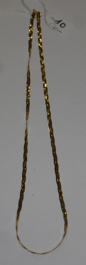 Collier en or jaune 18k, à mailles plates finement tressées. L. 42 cm - Poids : 4,1 gr