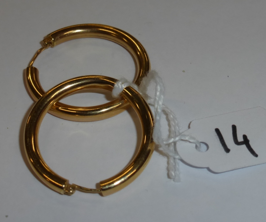Paire de créoles en or jaune creux. Poids : 3 gr