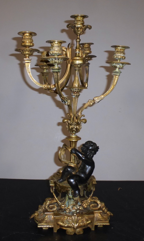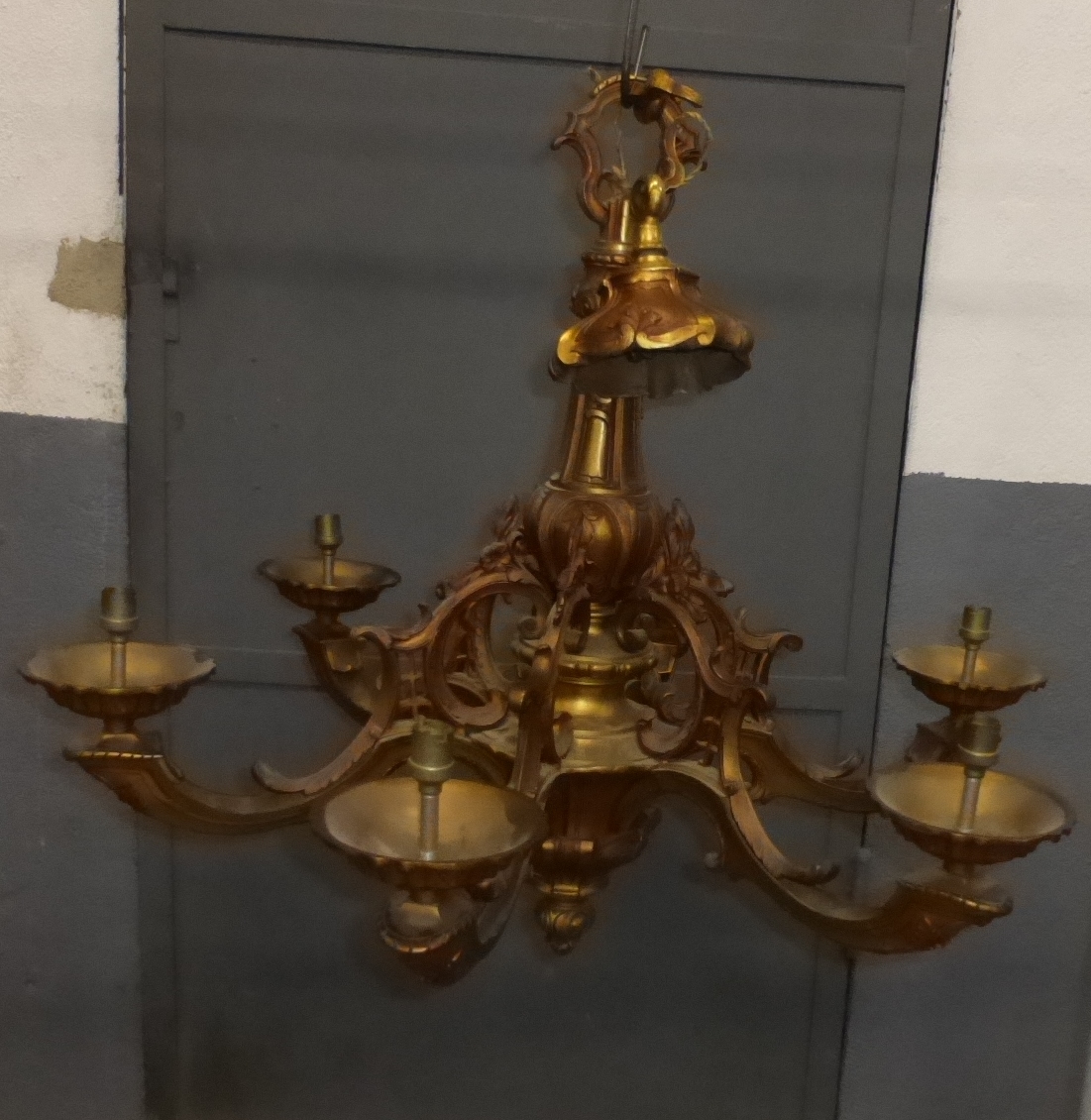 Lustre rocaille en bronze à six lumières à décor d'ailes de chauve-souirs et feuillages. H. 93 cm