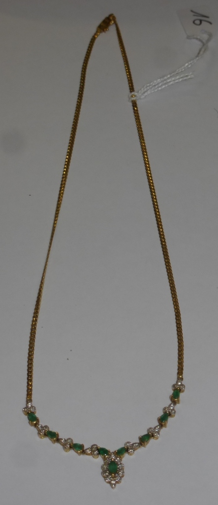Collier en or jaune serti d'émeraudes et diamants taille rose. PB: 12,1 gr