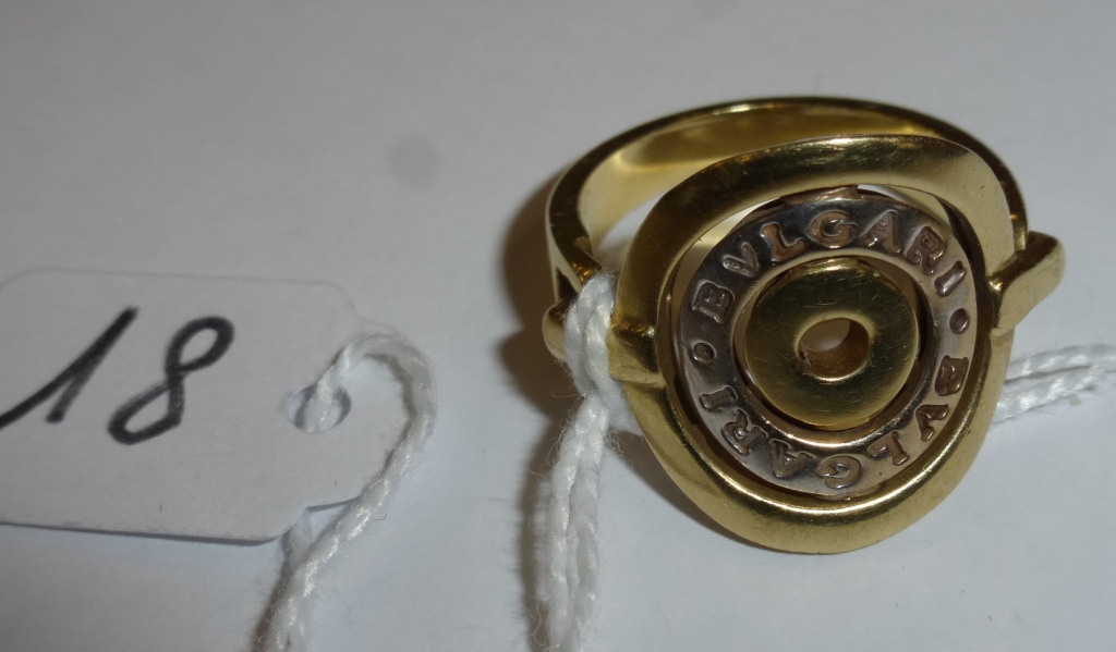 BULGARI - Bague semi-mobile astrale en or jaune et or blanc gravée Bulgari en son centre. TDD. 58 mm - Poids : 11,1 gr