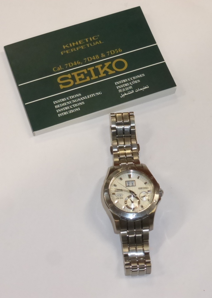 SEIKO - Montre bracelet homme en titane haute densité (ultra légère). verre saphir étanche. Montre à quartz à batterie rechargeable. Remontage automatique. Calendrier perpétuel.