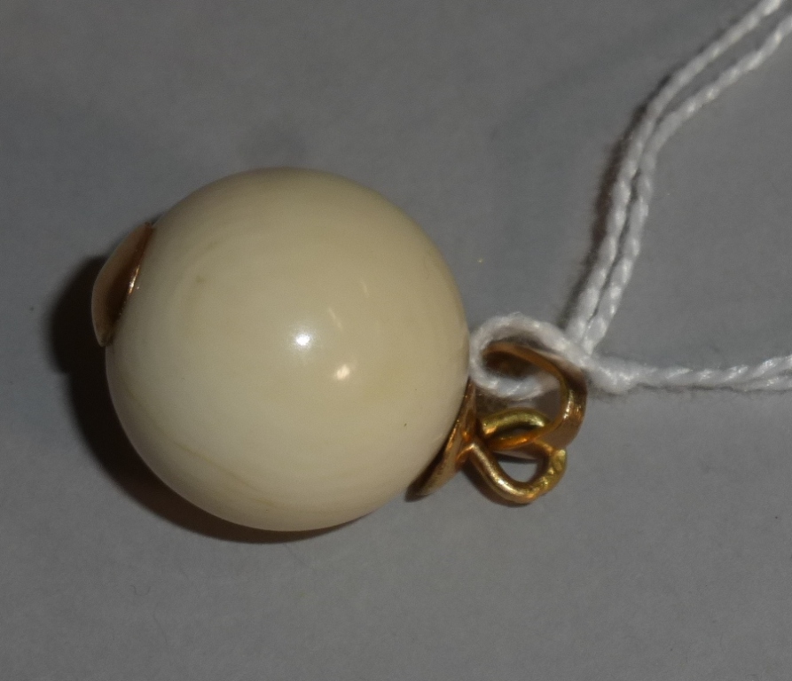 Pendentif boule en ivoire. Monture en or jaune. PB : 7 gr