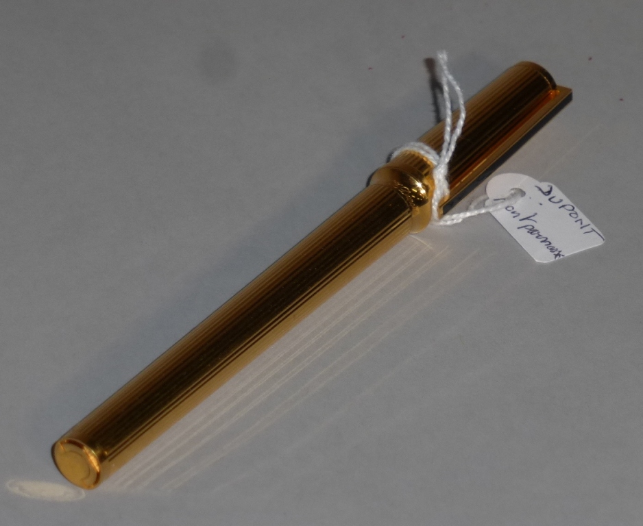DUPONT - Stylo plume modèle "Montparnasse" plaqué or et barrette laquée noir. Plume en or 18 K