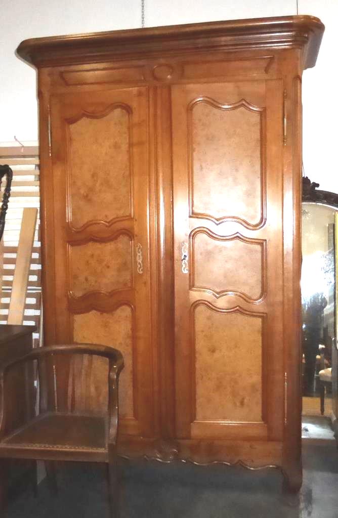 Armoire en noyer et loupe de noyer ouvrant à deux portes. XIXe siècle. H. 233 L. 135 P. 57 cm