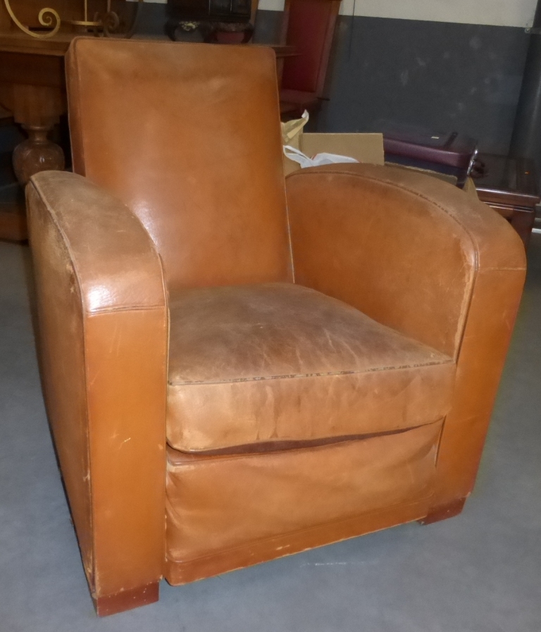 Fauteuil club en cuir. Vers 1950 H. 80 L. 77 P. 80 cm