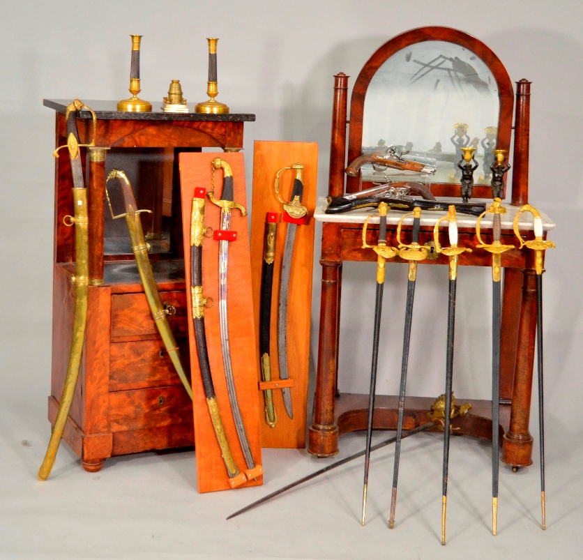 Collection de 25 sabres et épées d’Epoque Empire et de ensemble de mobilier Empire