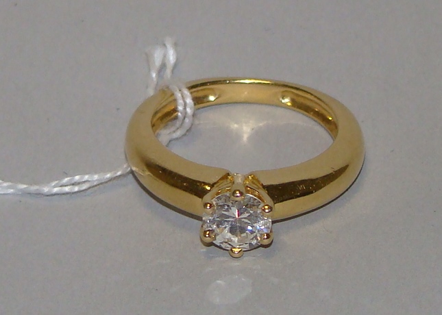 Bague en or jaune ornée d'un diamant solitaire taille brillant pesant 0,80 ct environ. Poids brut : 6,8 g.