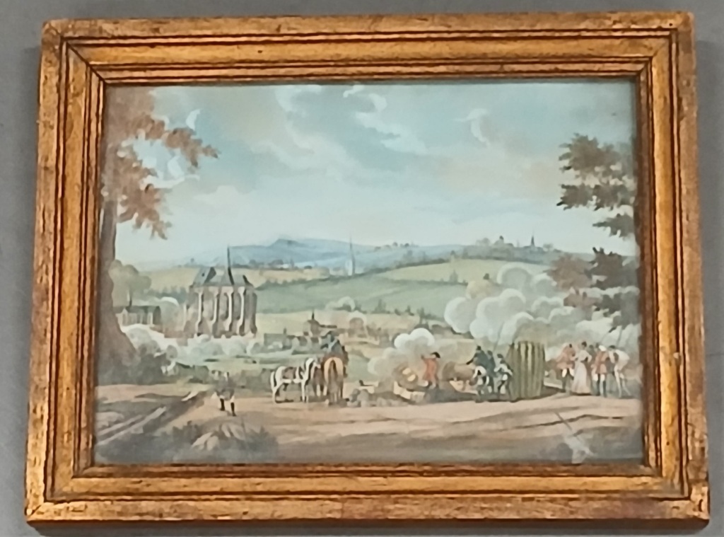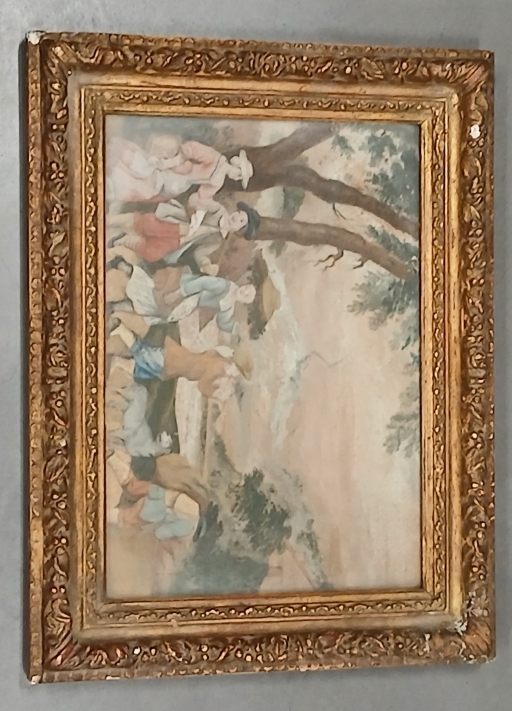 14 Ecole FRANÇAISE, fin XVIIIe siècle "La promenade" Gouache sur carton. 23 x 31 cm