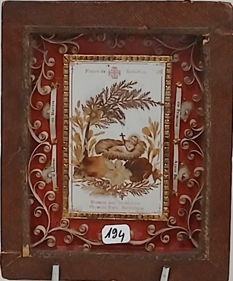 221 Fauteuil d'enfant provençal en bois. Assise en tapisserie au petit point. XIXe siècle. H. 73 L. 46 P. 38 cm