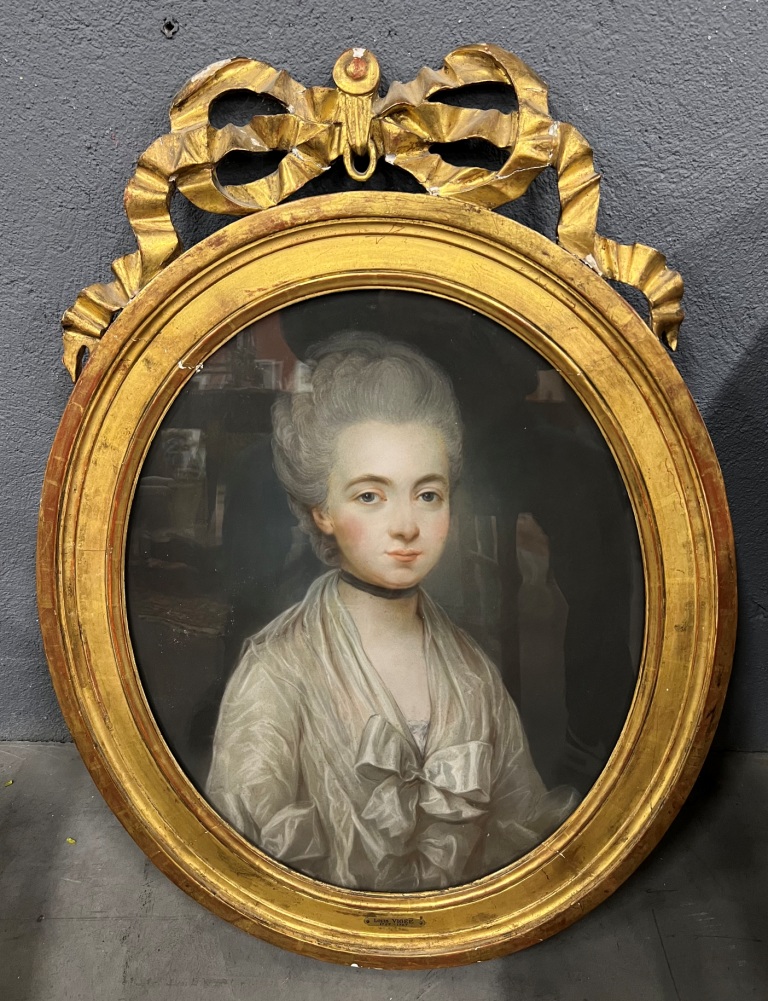 33 Louis VIGEE (1715-1767) "Portrait d'élégante en déshabillé" Pastel ovale. 62 x 50 cm