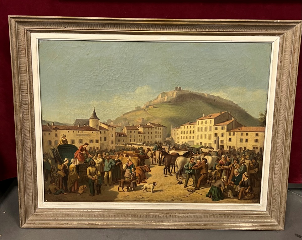 40 Edouard Amable ONSLOW (1820-1904) "Le marché" Huile sur toile, signée en bas à gauche. 63 x 82 cm