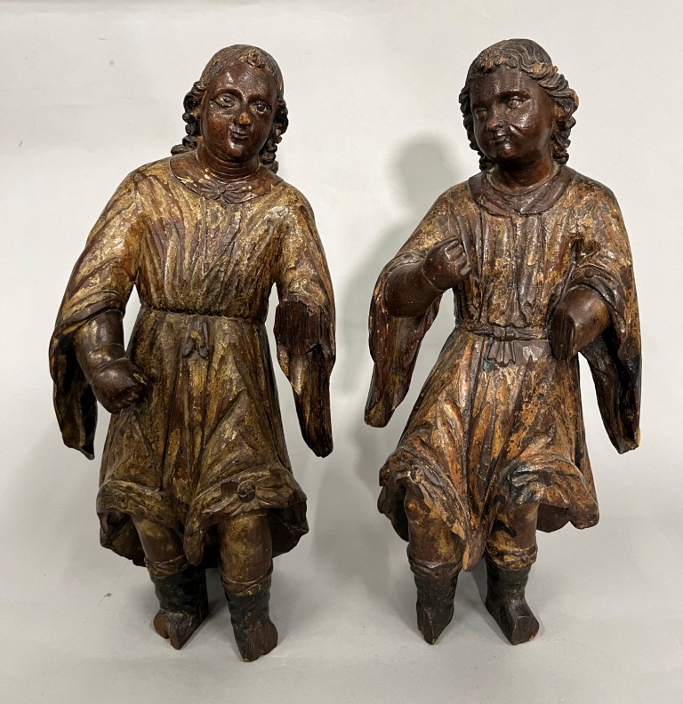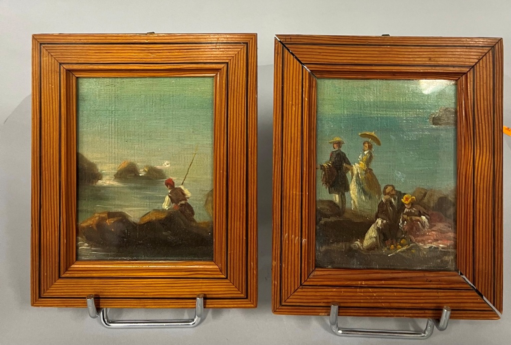 4 Ecole ITALIENNE du XIXe siècle "Jeunes napolitains" Deux gravures en couleur, signature sur l'une en bas à droite A. DELETEMI (petites déchirure à l'une et une marie-louise abîmée). 19 x 14 cm