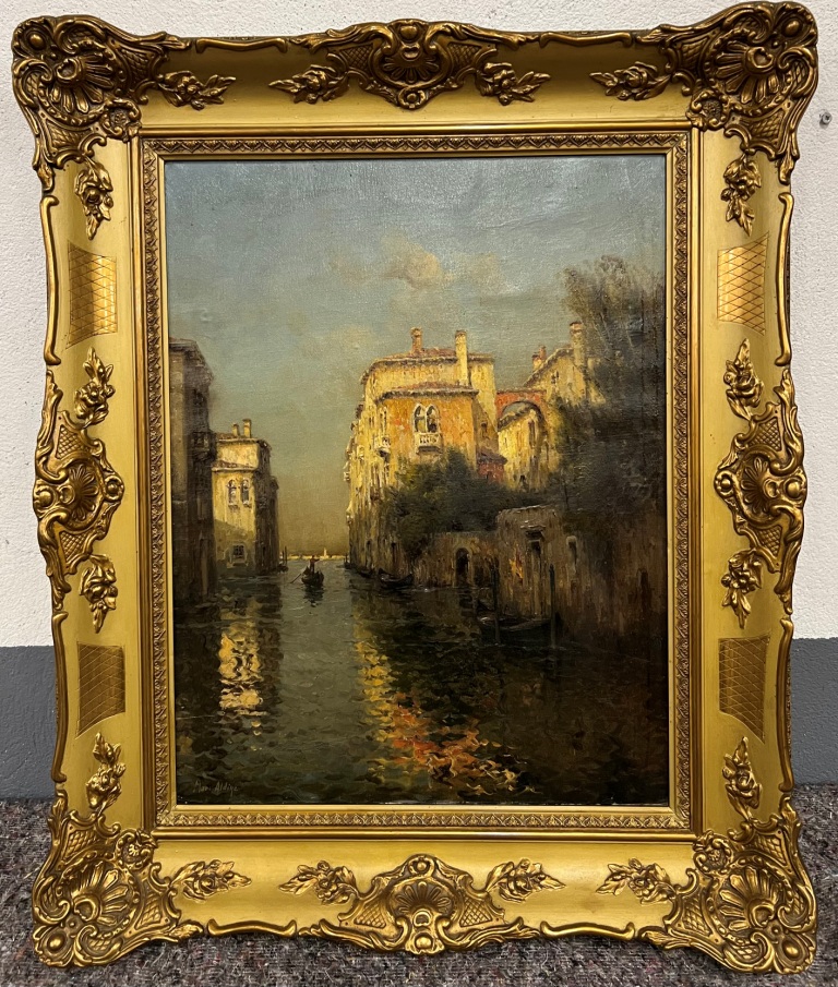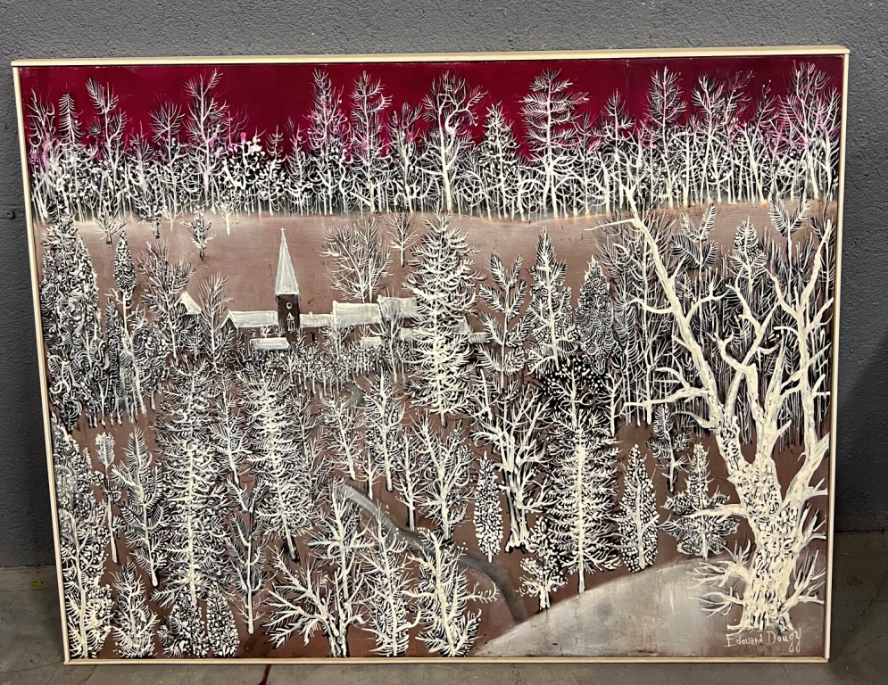 13 Ecole LYONNAISE, Adolphe Elisée BOURDE (1859-1935) " Vue de l'ile Barbe" Huile sur toile, signée n bas à droite. (restaurations) 41 x 32,5 cm