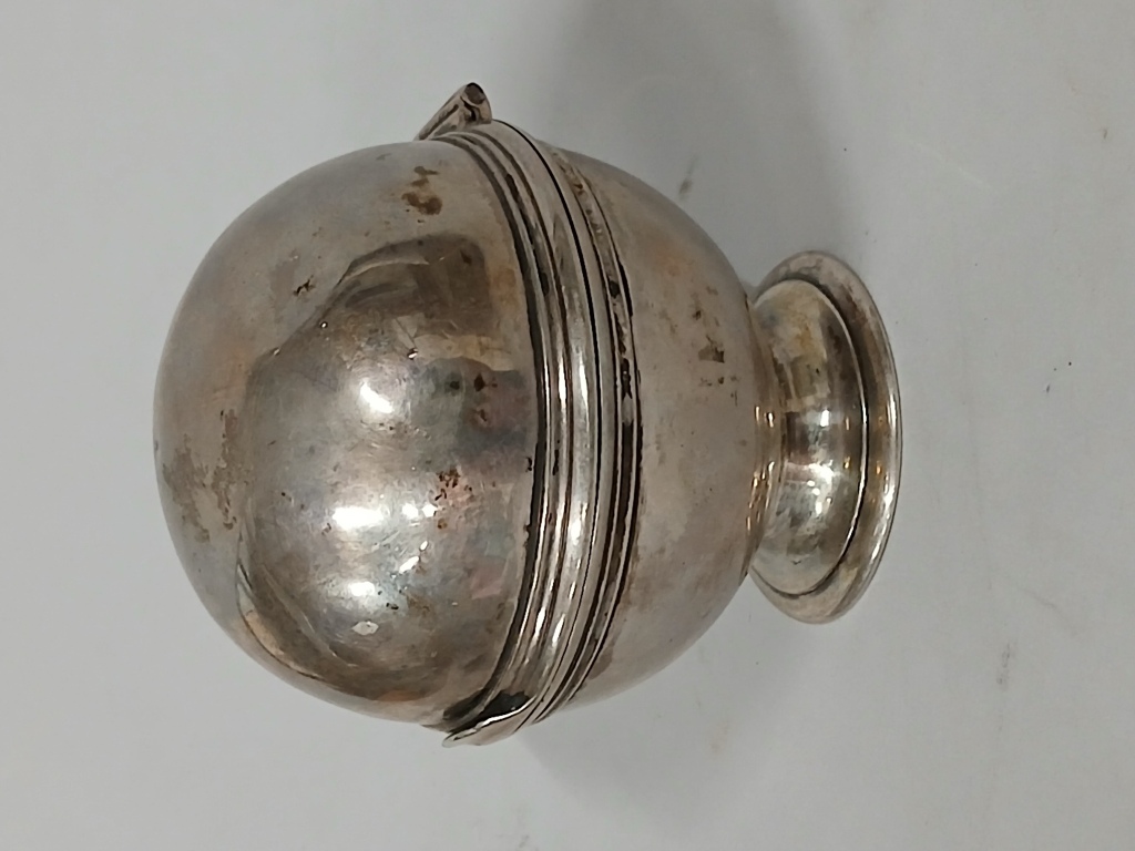 274 Robert POULET (1929-2021) - Lampe-Sculpture ovale "Spoutnik" en béton armé patiné argent orné de barreaux de verre transparent. Repose sur un piétement tripode en acier. Vers 1970 H. 29 cm Prov. Famille de l'artiste.