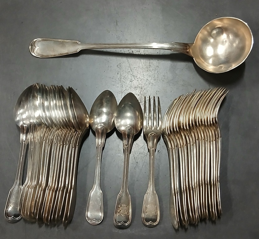 247 Att à Maison CHRISTOFLE - Meuble à ménagère en bois ouvrant à 5 tiroirs avec emplacements pour les couverts. Repose sur des pieds légèrement cambrés. Style Louis XV.